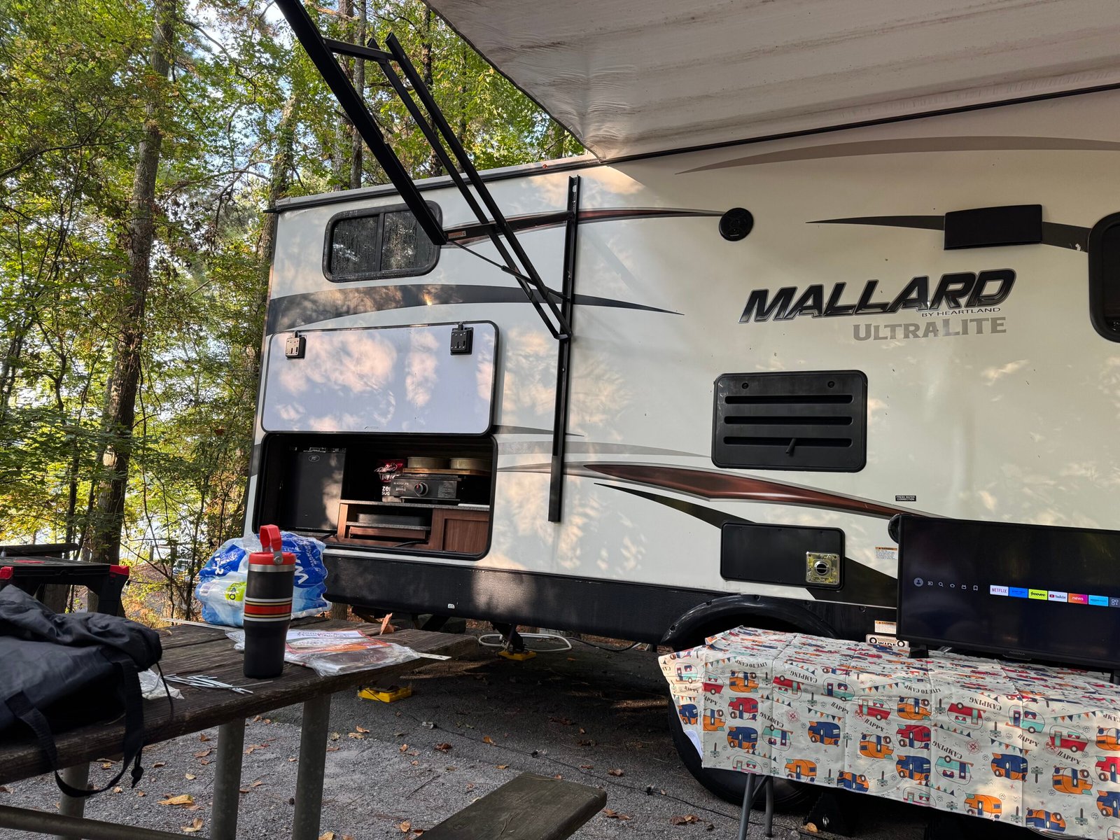 Big Country Basecamp is our cozy 32′ Mallard ultra-lite, designed for family comfort on the road.